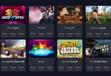 Included slots: Disco Spins, Dracula, Fisticuffs, Gonzo’s Quest, Jack and the Beanstalk, Sparks, Spinata Grande and The Invisible Man.