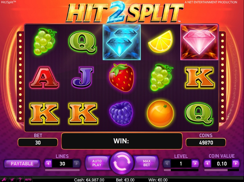 We like to call things “retro” whenever they carry a reminiscence to the past and that is no different with Hit 2 Split. Netent took the traditional fruit slot symbols and incorporated them into a modern yet “retro” design with vivid colors and rich graphics. To convey it back into the present they added a Free Spins Bonus round, Random Splitting Symbols and stacked Wilds in the bonus round. Background sound is an endless playing instrumental tune which I suppose should be from ‘ye good ol’ days.