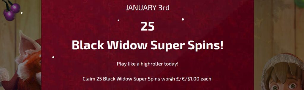 Special for all Atari and Pariplay fans, take the exciting Atari: Black Widow slot from Pariplay for a spin until midnight on 3rd January 2019 with 25 Super Bonus Spins at € 1.00 on your next deposit of € 100.00 The spins are instantly added after the deposit is completed. Use the designated code in the banking lobby.